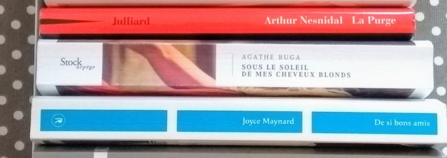 Que du bonheur littéraire pour ce mois de mars qui s'achève ! Piochez allègrement dans cette liste qui m'a grandement réjouie : C'est lundi aujourd'hui, Sytske Van Koeveringe (éditions NIL) La Purge, Arthur Nesnidal (éditions Julliard) Sous le soleil de mes cheveux blonds, Agathe Ruga (éditions Stock) De si bons amis, Joyce Maynard (éditions Philippe… Lire la suite Bilan de mars : un mois faste !